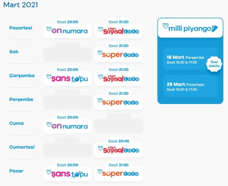 Şans Topu haftada 1 gün: Çarşamba günleri çekilir. Her çekilişte küre içerisindeki 34 numara içinden 5 numara, 14 numara içinden 1 numara çekilir.