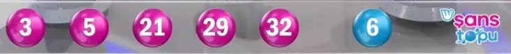 Milli Piyango İdaresi (MPİ) 9 Eylül Şans Topu sonuçları: 5 - 29 - 3 - 32 - 21 + 6