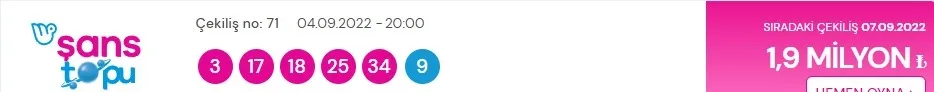4 Eylül Şans Topu çekiliş sonuçları ve şanslı numaralarla MPİ büyük ikramiye sorgulama ekranı detayları şöyle;