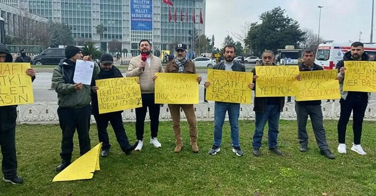 İstanbul Büyükşehir Belediyesi (İBB) önünde eylem yaptı. Tezgâhlarının toplatıldığını belirten simitçiler 3 yıldır mağduriyet yaşadıklarını söyledi. Eylemciler adına açıklama yapan Sami Eryılmaz, "Başkan