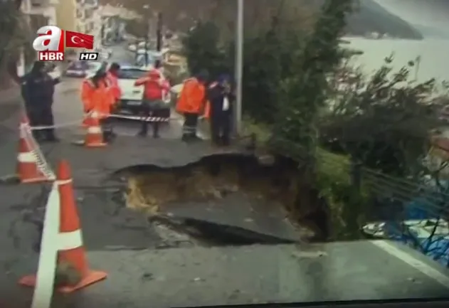Sarıyer'de yoğun yağış nedeniyle yol çöktü. Çökme esnasında yoldan araç ve yayanın geçmemesi olası bir faciayı önlerken, yolun tek şeridi trafiğe kapatıldı.