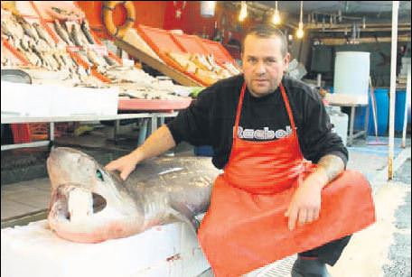 avlanan balıkçıların ağına 200 kilo ağırlığında, 2.5 metre uzunluğunda bir köpek balığı takıldı Kilyos açıklarında tekneleriyle balık avına çıkan balıkçı Coşkun Erkaya ile arkadaşları, sabaha karşı ağlarını çekerken, camgöz cinsi köpek balığının ağlara takıldığını gördü. Balıkçılar tarafından uzun uğraşlar sonucu tekneye alınan köpek balığını Maden Mahallesi'ndeki işyerine getiren Coşkun, 200 kilo ağırlığında ve 2.5 metre uzunluğundaki köpek balığını tezgahında sergiledi.