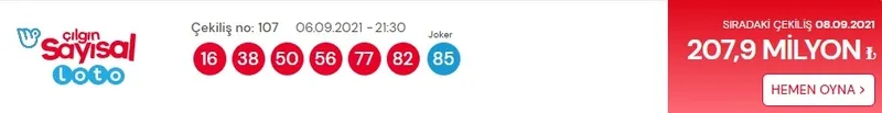 Milli Piyango İdaresi (MPİ) ile Sisal Şans ortaklığında her hafta Pazartesi, Çarşamba ve Cumartesi günleri MP TV ile Youtube canlı yayınında kazandıran numaraları belirlenerek şans oyunu severlere duyurulmaya devam ediyor. 207 Milyon Türk Lirası'nı aşan büyük ikramiye tutarının sahibi olmak isteyenler "MPİ 6 Eylül Sayısal Loto sonuçları açıklandı mı?" sorusuna cevap aranmaya devam ediyor.