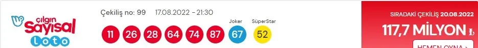 Milli Piyango Online ile 17 Ağustos Sayısal Loto çekiliş sonuçları ve MPİ bilet sorgulama sayfası detayları şöyle;