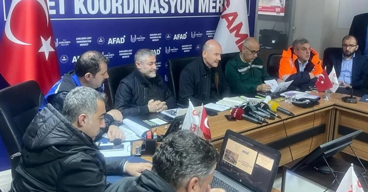 İçişleri Bakanı Süleyman Soylu, Hazine ve Maliye Bakanı Nureddin Nebati ile Tarım ve Orman Bakanı Vahit Kirişci, Şanlıurfa Güvenlik ve Acil Durumlar Koordinasyon Merkezi'nde (GAMER) açıklamalarda bulundu.