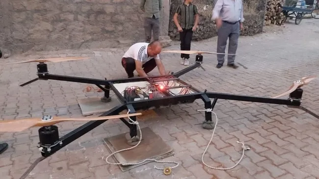 Tabi şu anki motorları yurt dışından getirdik. Kabini tamamen kendim yaptım. Kaynakları olsun, yazılımı olsun, montajı olsun bütün işçilik proje çizim hepsi bana ait. Uçan arabamız tek kişiliktir. Bunun iki veya dört kişiliğini yapacaktım.