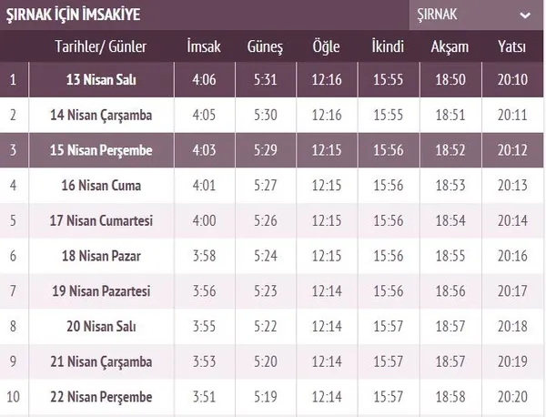 Diyanet tarafından yayımlanan 2021 Şırnak imsakiye ile beraber İftar ve sahur saati de belli oldu. Faziletleri saymakla bitmeyecek kadar çok olan bu mübarek ayda büyük küçük demeden oruç tutmaya ve kendilerine farz kılınan bu ibadeti yerine getirmeye çalışan Müslüman alemi; an itibariyle adeta geri sayıma başladı. Şırnak'ta sahur vakti ve iftar saat kaçta? Soruları ile araştırılan il il İmsakiye takvimi Diyanet İşleri resmi sitesi üzerinden duyurulmuştu. Ramazan ayının ilk günüyle beraber konuyla ilgili araştırmalar hız kazandı. Buna göre; Şırnak'ta iftar ve sahur vakti saat kaçta? Ezan saat kaçta okunacak? İşte 2021 Şırnak Ramazan imsakiyesi…