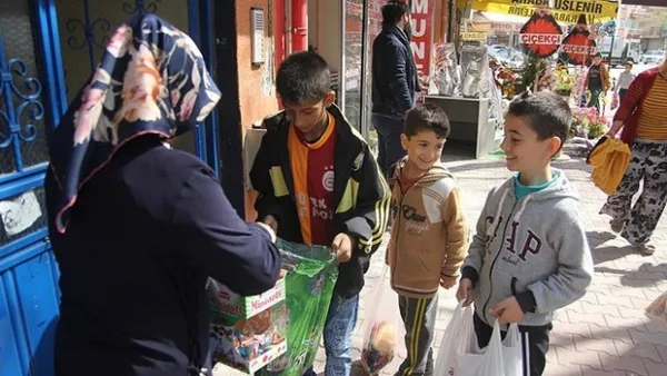 Çocukların sesini duyan ev sahibi bayan, elindeki tabak dolusu üzüm veya ne verecekse onunla gelerek kapıyı açar ve sıra ile çocukların avucuna veya ekseriye boyunlarına takmış oldukları keselere birer avuç vermek suretiyle onları sevindirirmiş. Çocuklar bu kapıdan kısmetlerini aldılar mı diğer kapıya topluca koşmaya başlar, öğleye kadar bütün mahalle dolaşılmış olur.