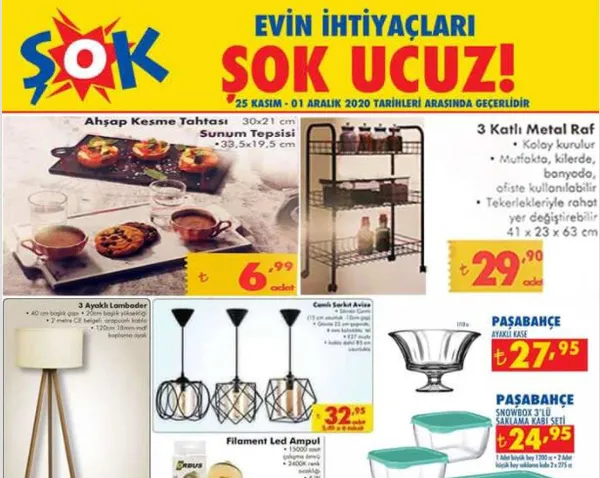ŞOK 25 Kasım 2020 aktüel ürünler kataloğu tüketicisiyle buluştu. Bugünden itibaren raflara dizilen indirimli ürünler listesinde züccaciye, kişisel bakım ürünleri, kışlık giyim ürünleri dikkat çekiyor. Her hafta birbirinden güzel indirimleri müşterilerine sunan markette bu hafta büyük indirimler yer alıyor. Özellikle ev hanımlarının her hafta internet üzerinden takip ettikleri ŞOK aktüel ürünler listesi 25 Kasım kataloğunu yayınladı. İşte ŞOK aktüel ürünler indirim kataloğu…
