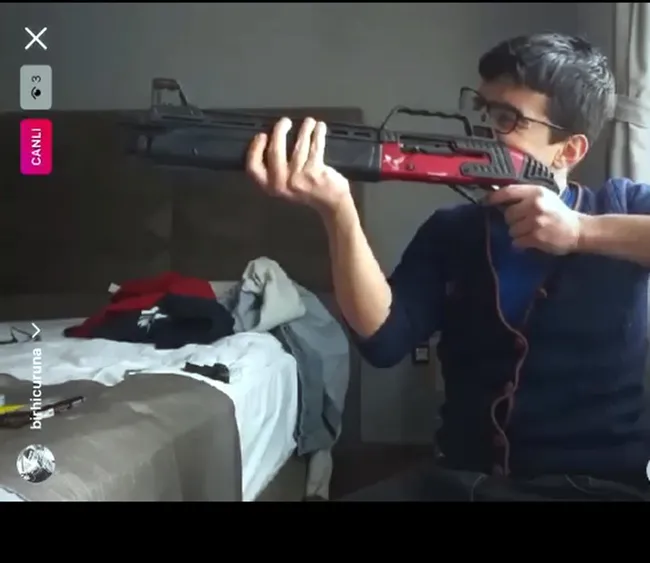 Kocaeli'nde inşaat işinde çalışan Eren B., müteahhitin kendisine güvenmesini sağladı. Patronun evine rahat girip çıkan Eren B. müteahhitte ait ruhsatsız pompalı tüfek, silah ve laptop çaldı. Ankara'da bir otele yerleşen Eren B., 'birhicuruna' instagram hesabı ile canlı yayın açtı. Eren B. takipçilerine müzik eşliğinde pompalı tüfek ve silahı gösterdi. Polis ekiplerinin takibine takılan Eren B. kaldığı otel odasında gözaltına alındı. Eren B. canlı yayında gösterdiği silahlar ele geçirildi. Eren B.'nin emniyetteki işlemleri devam ediyor.