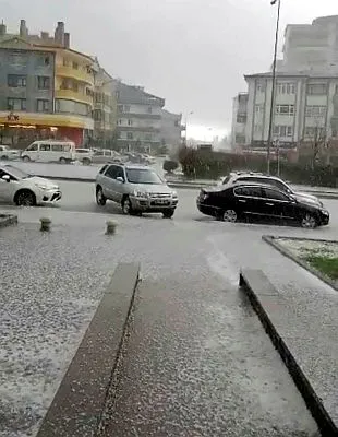 Meteoroloji Genel Müdürlüğü, Ankara için fırtına uyarısında bulunmuştu. Yağmurun ardından aniden bastıran dolu yağışı vatandaşları hazırlıksız yakaladı. Şiddetli dolu yağışı böyle görüntülendi.