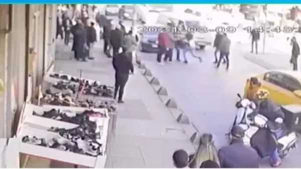 İstanbul'da taksiciyi döven şahıs ayırmaya çalışan kadını da böyle darp etti | Video