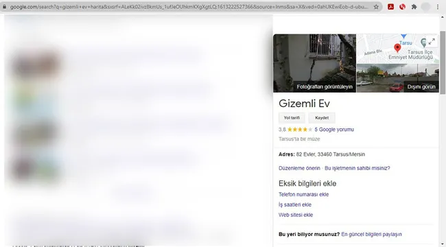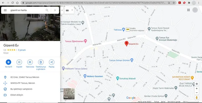 Kazının yapıldığı ev, Google Haritalar'a da 'Gizemli ev' olarak girdi. Tarsus'un merkezinde olan ev, haritada araştırma yapan kişilerin gözüne çarpıyor.
