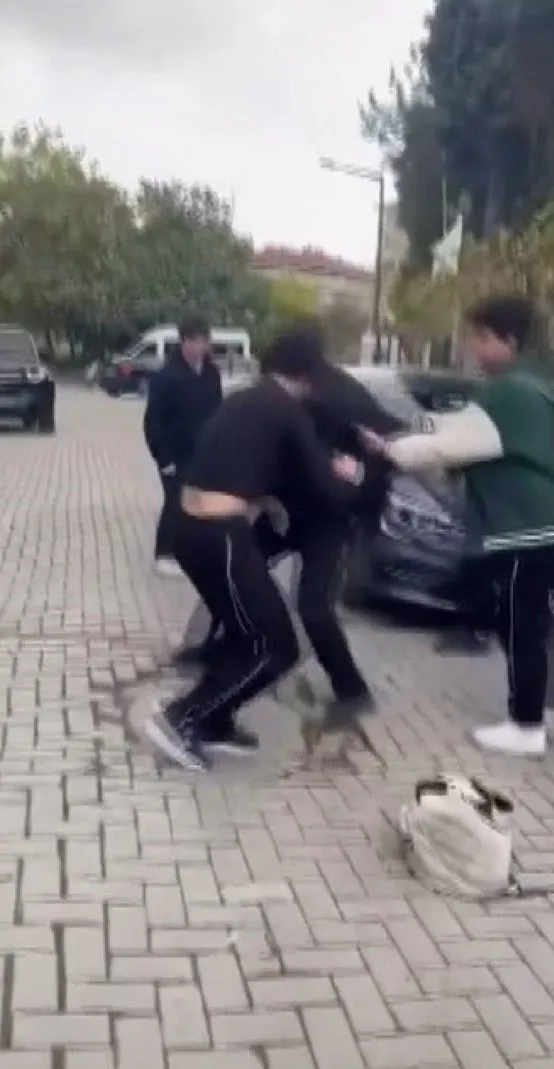 Öğrencilerin okul önünde kavga etmesi ve bir öğrencinin kolundan bıçaklanma anı cep telefonu kamerasına saniye saniye yansıdı.
