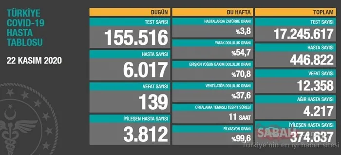 BAKAN KOCA SON DAKİKA AÇIKLADI! 26 Kasım koronavirüs vaka sayısı ve ölü sayısı kaç oldu? Bugünkü korona tablosu corona virüs vaka sayısı açıklandı mı?