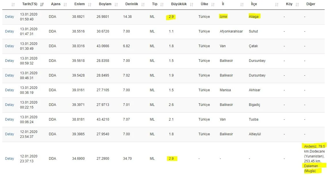 Boğaziçi Üniversitesi ve Afet ve Acil Durum Yönetimi Başkanlığı Deprem Dairesi Başkanlığı (AFAD) tarafından sürekli güncellenerek yurt ve dünyada meydana gelen son depremlere ilişkin verilerin kamuoyuna sunulduğu son depremler listesi verilerine ve Akdeniz'da meydana gelen son dakika gelişmelerine haberimizden ulaşabilirsiniz…