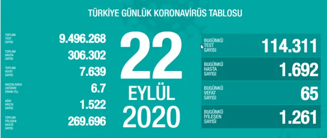 22 EYLÜL KORONAVİRÜS VERİLERİ