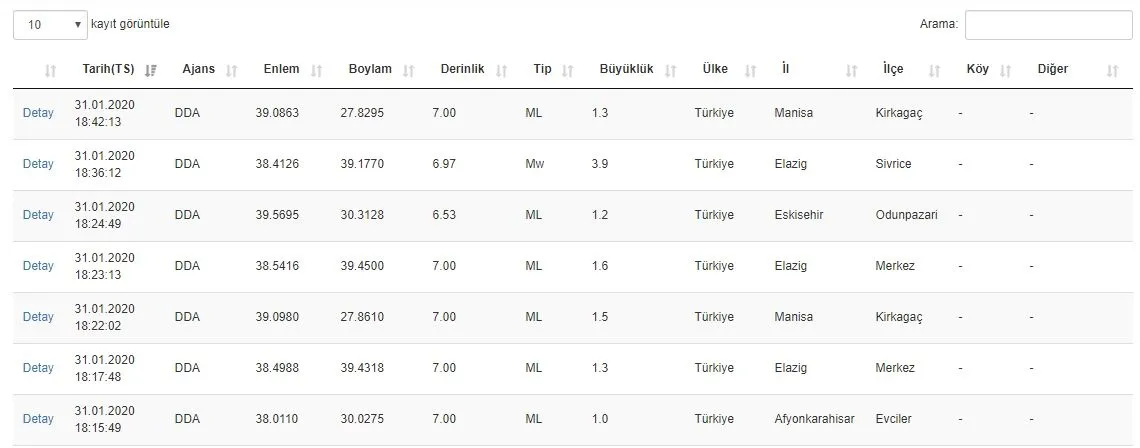 Afet ve Acil Durum Yönetimi Başkanlığı (AFAD) tarafından sürekli olarak güncellenerek yurtta ve dünyada meydan gelen depremlerin kamuoyuna duyurulduğu son depremler listesi verilerine göre yerin Elazığ'ın Sivrice ilçesinde yerin 6.97 kilometre derinliğinde 3.9 şiddetinde deprem meydana geldi. Bölgede yaşayan vatandaşlar deprem sonrası korku ve panik yaşadı...