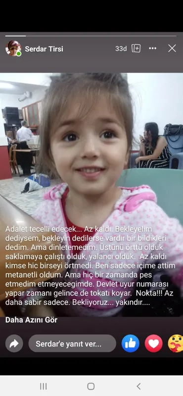 Baba Serdar Tirsi, sosyal medya hesabından kızının fotoğrafının da yer aldığı paylaşımda bulunarak, herkesin sabretmesini istedi.