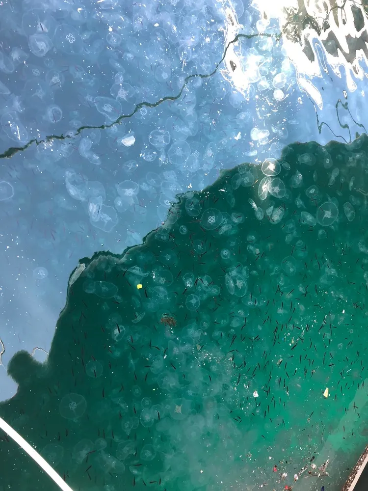Manzara şu an normal çünkü denizanaları Marmara Denizi'nde yoğun olarak bulunan türler bu mevsimlerde. İşte en son kasım ayında bir artış gösterdiler. Herkes neden bu kadar çoğalıyor demişti ama zaten denizanaları Marmara Denizi'nde yoğun olarak bulunuyor. Öncelikle bunu bilmemiz lazım. Ama daha çok havalar sakin ve güneşli olduğu zamanlarda daha çok açıklarda bulunur bu türler.