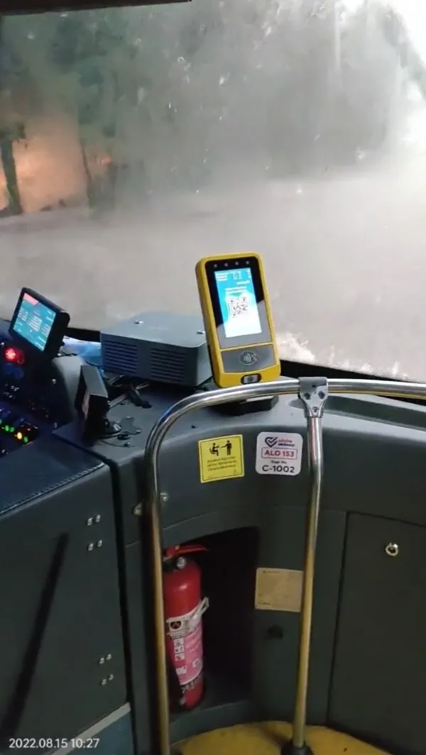 İstanbul'da belediye otobüsünü su bastı | Video