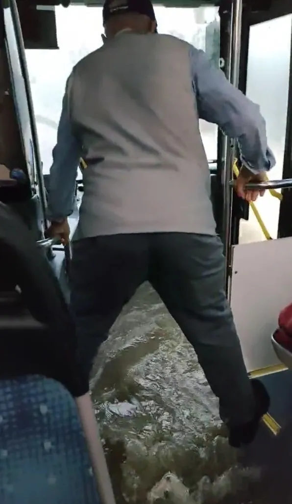 Vatandaşlar bulundukları otobüsün sular altında kalmasını korku dolu gözlerle izledi.