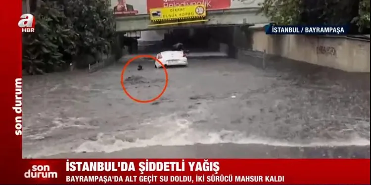 Bayrampaşa'da bir alt geçit su ile doldu. Can pazarının yaşandığı olay iki sürücü mahsur kaldı. Meteoroloji Genel Müdürlüğü'nün uyarısının ardından İstanbul'da kuvvetli yağmur başladı.