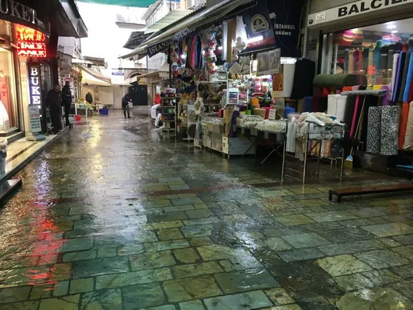 Şehrin ana arterlerinde trafikte meydana gelen yoğunluğu azaltmak için polis ekipleri çaba sarfetti. Tarihi Kemeraltı Çarşısı da yağıştan nasibini aldı. Mazgallardan taşan sular, işyerlerine doldu. Bir han sulara teslim oldu. Esnaf kendi imkanlarıyla suları tahliye etmeye devam etmeye başladı. Esnaf Aytaç Karaca, bu durumun yıllardır süregelmesine rağmen çözüm bulunamadığının altını çizdi.