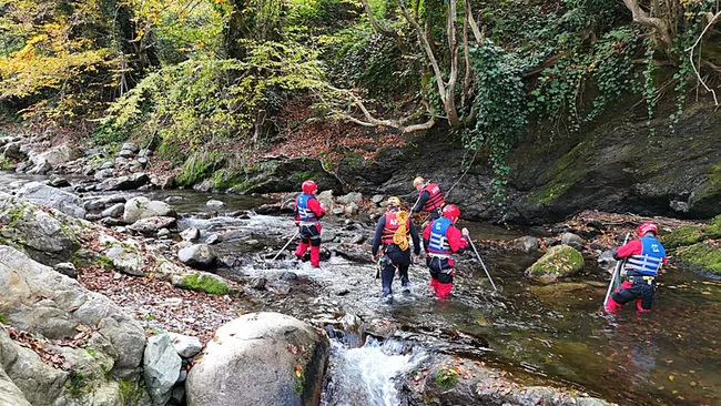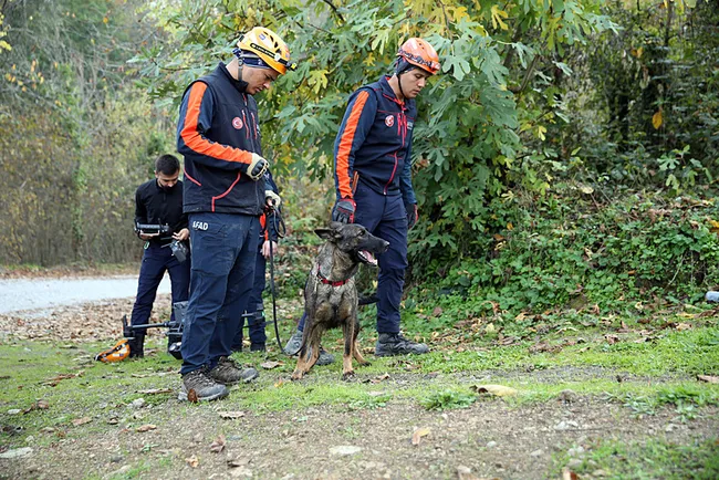 Ankara ve Samsun'dan gelen jandarma ve AFAD'a ait "Pekmez", "Paye" ve "Abre"k isimli kadavra köpekleriyle JÖAK'a ait kadavra köpeği, daraltılmış baz istasyonu bilgisiyle belirlenen ormanlık alanda arama çalışmalarını yoğunlaştırıldı.