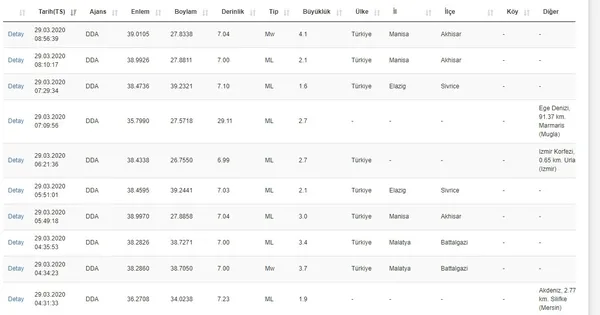 Afet ve Acil Durum Yönetimi Başkanlığının (AFAD) internet sitesinde yer alan bilgiye göre, saat 08.56'da Manisa'nın Akhisar ilçesinde 4,1 büyüklüğünde sarsıntı kaydedildi. Depremin, 7 kilometre derinlikte olduğu belirlendi. İşte son depremler listesi!