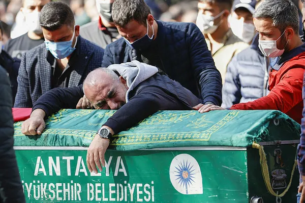 Eşi Şükriye Ateş'in yanında oğlu, gelini ve henüz doğmamış torununu kaybeden Adem Ateş de cenazede ayakta durmakta güçlük çekti. Adem Ateş, tabutların başına gelip gözyaşı döktü. Cenazede jandarma sık sık maske ve sosyal mesafe uyarısı yaptı. Ateş ve Em ailelerinin yakınları da cenazede gözyaşlarına hakim olamadı. Aynı kazada yaşamını yitiren diğer aracın sürücüsü Mehmet Ali Em ise Sarıabalı Mahallesi'ne bağlı Çiftlik mevkiindeki mezarlıkta gözyaşları arasında toprağa verildi.