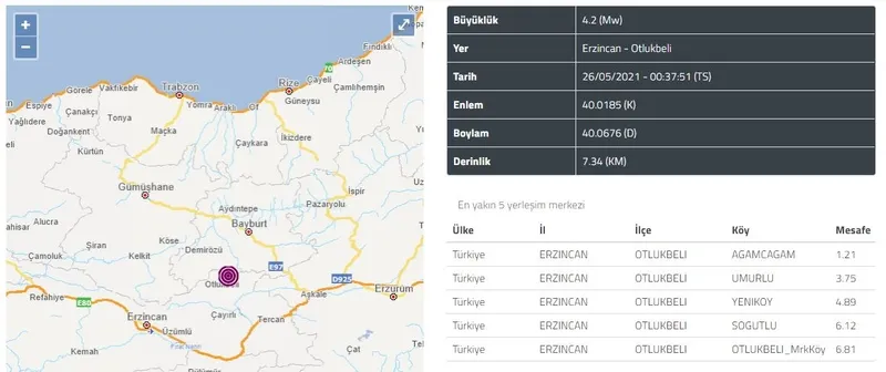 AFAD ve Kandilli Rasathanesi son depremler listesi ile ilgili güncel bilgiler merak ediliyor. Yaşanan en ufak sarsıntıda dahi endişe yaşanırken depremin büyüklüğü ve küçüklüğüne Kandilli ve AFAD listesinden öğreniliyor. En son Erzincan'ın Otlukbeli ilçesinde saat 00:37'de yerin 7.34 kilometre derinliğinde 4.2 büyüklüğünde bir deprem meydana geldi. Bu gibi depremler yeni depremlerin sorgulamasına sebep oldu. Peki Deprem mi oldu, nerede ve kaç şiddetinde? 26 Mayıs AFAD ve Kandilli Rasathanesi son depremler listesi