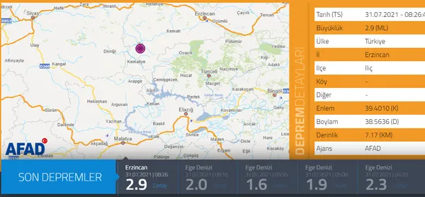 AFAD ve Kandilli Rasathanesi son depremler listesi ile beraber Türkiye genelinde meydana gelen depremler hakkında bilgi sahibi olabilirsiniz. Anlık olarak son depremleri görüntülemek için aşağıda yer alan bağlantılara tıklayabilirsiniz. İşte, 31 Temmuz 2021 Türkiye genelinde meydana gelen son depremler listesi;