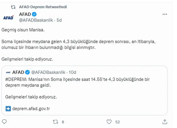 AFAD SON DEPREMLER İÇİN TIKLAYINIZ
