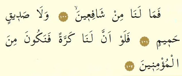 100. Ayet: İşte bu yüzden bizim şefaatçilerimiz yok."