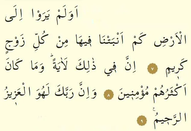 7. Ayet: Peki o inkârcılar yeryüzüne hiç bakmazlar mı? Orada her türden nice değerli bitkiler çıkarmışızdır.