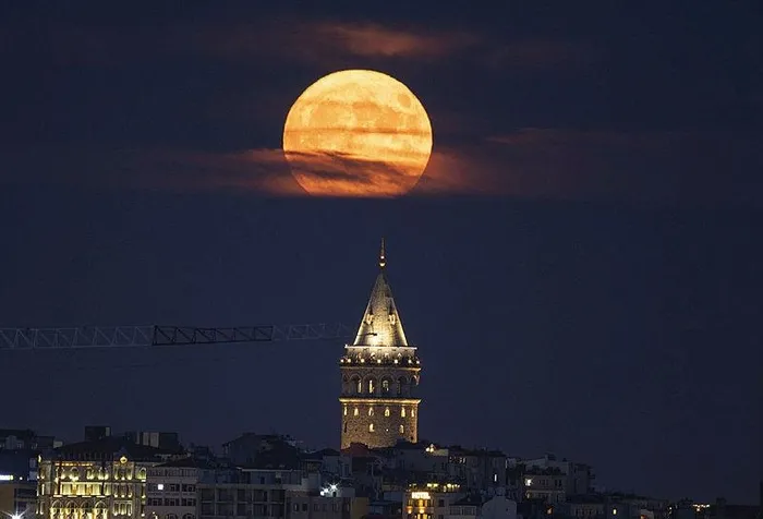 Ay'ın normalden daha parlak ve büyük gözlemlendiği "Süper Ay" İstanbul'da Galata Kulesi ve Çamlıca Camii ile birlikte görüntülendi.