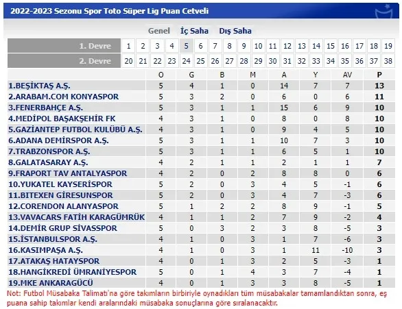 Güncel Süper Lig Puan Durumu Sıralaması Tablosu ve tüm bilgiler şöyle;