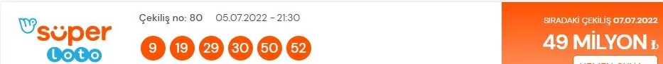 Süper Loto çekiliş sonuçları ve 5 Temmuz şanslı numaralarla MPİ bilet sorgulama ekranı detayları şöyle;