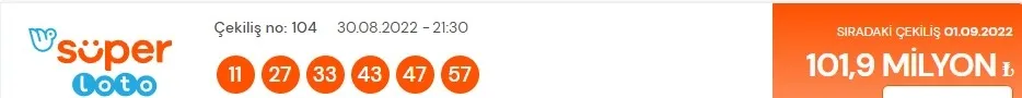 Milli Piyango İdaresi (MPİ) ile Sisal Şans ortaklığında haftalık düzende 3 gün yapılan MP TV canlı yayınında kazandıran numaraları belirlenen "Süper Loto Sonuçları" bugün bir kez daha çekilerek şans oyunu severlere duyurulacak. 94 Milyon TL'yi aşan büyük ikramiye tutarı kazananı olmak isteyenler Milli Piyango Online üzerinden kupon doldurmaları sonrasında şanslı numaraları öğrenmek ve MPİ bilet sorgulama yapmak isteyerek Süper Loto Sonuçları Açıklandı Mı? sorusu üzerinden araştırmalarına devam ediyor.