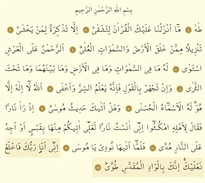 12. İnnî ene rabbuke fahla' na'leyk inneke bil vadil mukaddesi tuva