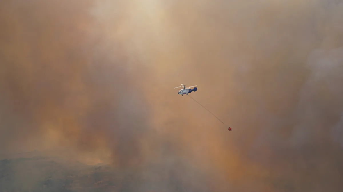 Vatandaşlar evlerini terk ederken hayvanlar güvenli bölgeye alınmaya çalışılıyor. Yangının oluşturduğu dumanların Çanakkale Boğazı'nı kapladığı görüldü.