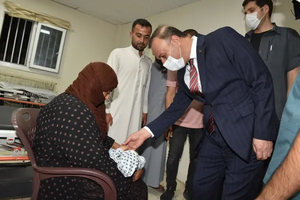 Telabyad'a Türkiye'den gelen ilk elektrik enerjisinin verilmesinin ardından Telabyad Hastanesinde yapımı tamamlanan ek binayı ziyaret eden Vali Erin, burada yapılan çalışmalar hakkında Telabyad Koordinatörü Vali Yardımcısı Oğuzhan Erdi Atak'tan bilgiler aldı.