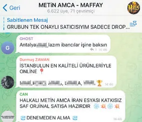 Telegram'da Barış T. tarafından kurulan "Metin Amca Online" isimli grubun üyesi olan 116 bin kullanıcının, istedikleri maddeleri yazdığı, satıcıyla konuştuktan sonra Türkiye'nin her yerine bu maddelerin ulaştırıldığı belirlendi. Uygulama üzerinden satış yapan tacirler, çeşitli uyuşturucu maddeleri sokak dilinde adlandırdıkları belirlendi. Uyuşturucuları 10 liradan 50 bin liraya kadar fiyatlarla sattıkları kaydedildi.