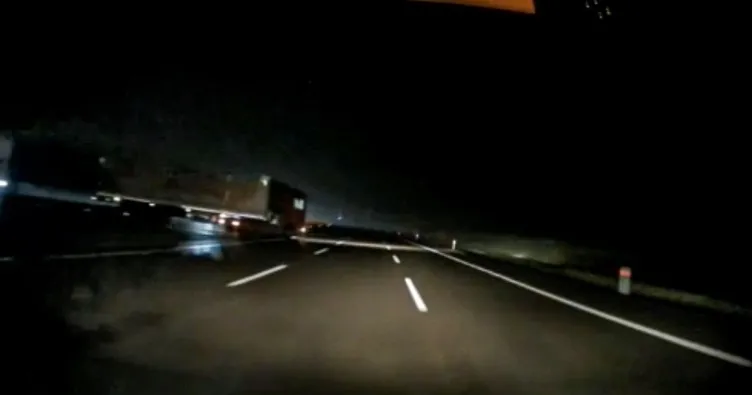 Gece saat 00.15 sıralarında yaşanan olayda, şeritleri kapatarak acil dönüş noktasından dönen tır trafiği tehlikeye soktu. İstanbul istikametine seyir halinde olan bir otomobilin araç içi kamerasına yansıyan görüntüler tehlikeyi gözler önüne serdi.