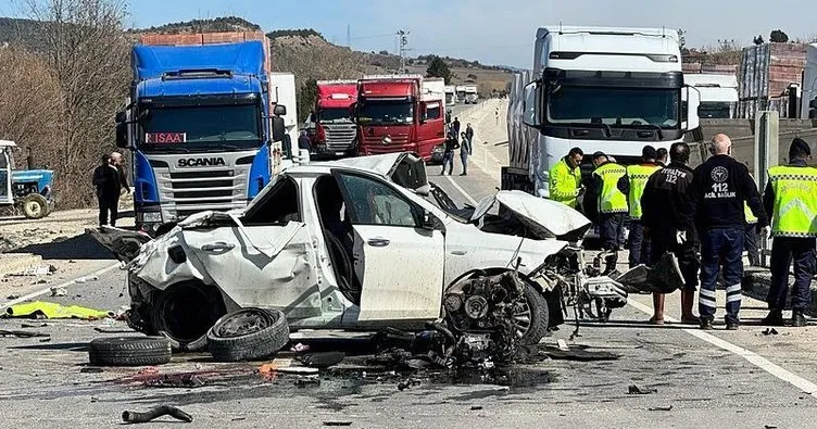 Bolu'da, önceki gün Anadolu Otoyolu'nda otomobilin dinlenme tesisi önündeki bariyerlere çarpması sonucu 3 kişinin yaşamını yitirdiği kaza, güvenlik kamerasına yansıdı.
