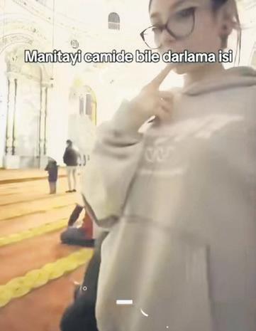 Sosyal medya platformu Tiktok'ta genç bir kız tarafından paylaşın videoda, cami ve namazla müstehcen bir şekilde alay edildi. "Manitayı camide bile darlama işi" başlığıyla paylaşılan videoda uygunsuz kıyafetleriyle erkekler bölümüne giren genç kızın, namaz kılan erkek arkadaşının yanında uygunsuz hareketlerle dans ettiği görüldü. Genç kız çektiği videoyu küfür dolu bir şarkıyla paylaşırken, sosyal medya kullanıcıları ise tepki gösterdi.