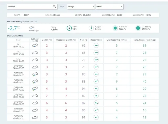 Amasya için 12 Şubat 2020 hava durumu tahmini: Az bulutlu, sıcaklık 8