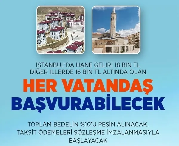 Başkan Erdoğan'ın talimatıyla daha çok dar gelirli vatandaşın projeden yararlanması için sosyal konutta başvuru bedeli 1.000 liradan 500 TL'ye indirildi.
