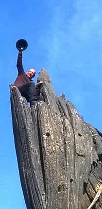 Çevredekilerin şaşkın bakışları arasında Truva Atı'nın baş kısmına kadar tırmanan Güney, burada tehlikeli hareketler yaparak yürekleri ağza getirdi.